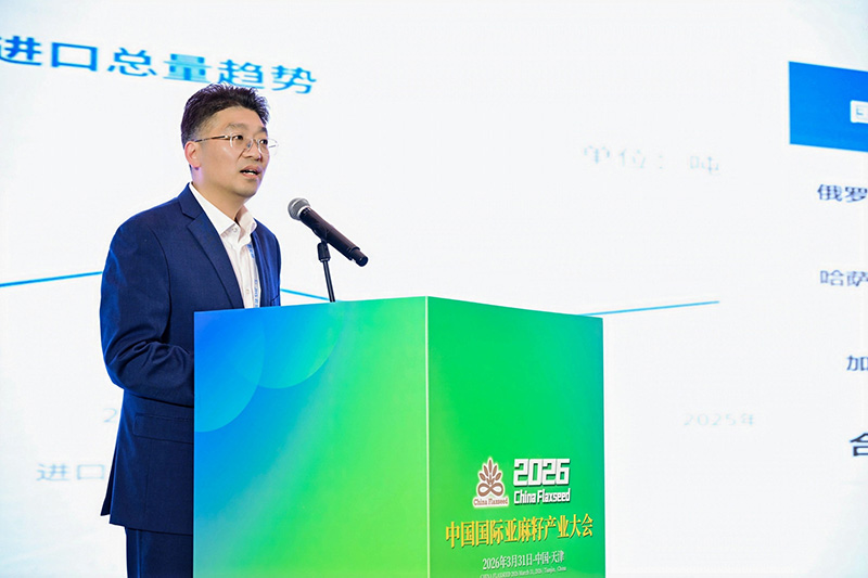 2026中国国际亚麻籽产业大会于 3 月 31 日在天津隆重召开。本次大会汇聚亚麻籽产业全链条优质资源,为国内外行业同仁搭建了高效务实的交流合作平台。我公司应邀出席会议,董事总经理陈长伟作为企业代表登台发言。