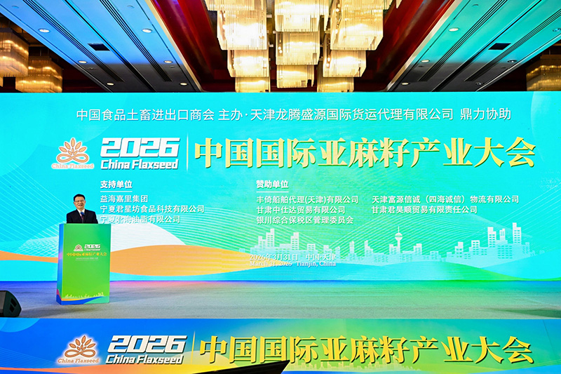 2026 中国国际亚麻籽产业大会于 3 月 31 日在天津隆重召开。本次大会汇聚亚麻籽产业全链条优质资源,为国内外行业同仁搭建了高效务实的交流合作平台。我公司应邀出席会议,董事总经理陈长伟作为企业代表登台发言。